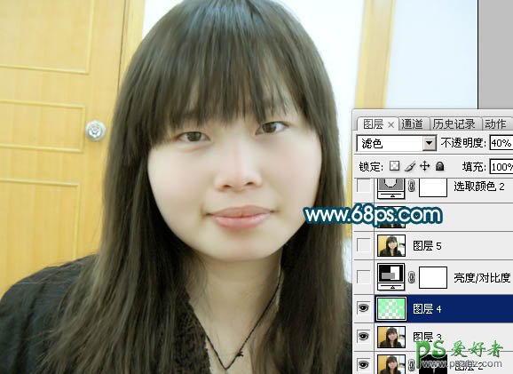 6、按Ctrl + Alt + ~ 调出高光部分的选区,新建一个图层填充颜色:#83FFAC,然后把图层混合模式改为“滤色”,图层不透明度改为:40%,如下图。