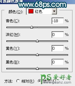 8、创建可选颜色调整图层,参数设置如图13 - 15,效果如图16。