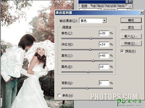 黄色通道:青色:+28 洋红:+24 黄色:+48 黑色:+8。