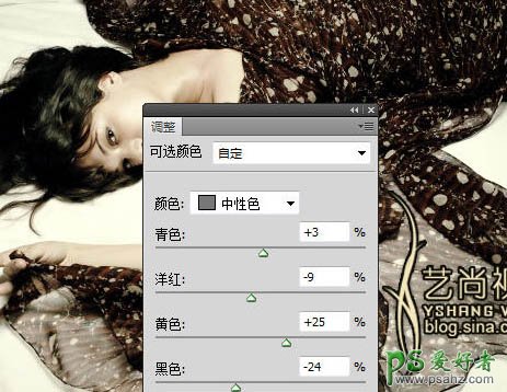 5、执行图层/新建调整图层/可选颜色,参数设置如下图: