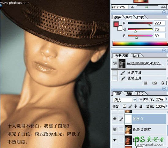 4、新建一个图层填充白色,图层混合模式改为“柔光”,图层不透明度改为:27%,如下图。