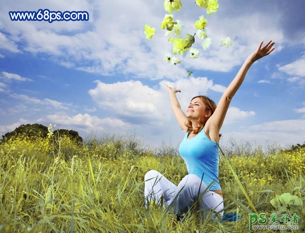 PS美女照片调色实例教程,photoshop调出景秋大胸美女田野照片,原图素材本身色彩比较少。仅绿的草地和蓝色的天空,色调已经分开。因此调色比较简单,用调色工具稍微把草地的颜色调成橙色,再适当调整下整体颜色即可。 最终效果 原图 1、打开