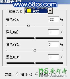 3、创建可选颜色调整图层,参数设置如图6,效果如图7。