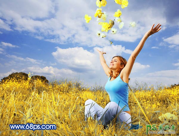 PS美女照片调色实例教程,photoshop调出景秋大胸美女田野照片,原图素材本身色彩比较少。仅绿的草地和蓝色的天空,色调已经分开。因此调色比较简单,用调色工具稍微把草地的颜色调成橙色,再适当调整下整体颜色即可。 最终效果 原图 1、打开