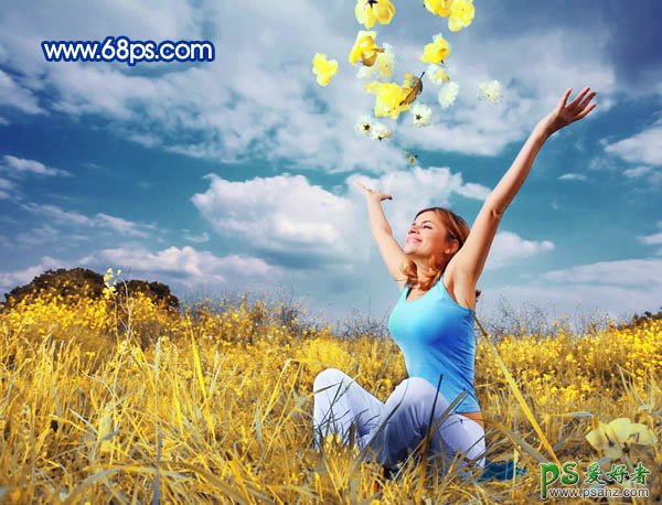 photoshop调出景秋大胸美女田野照片