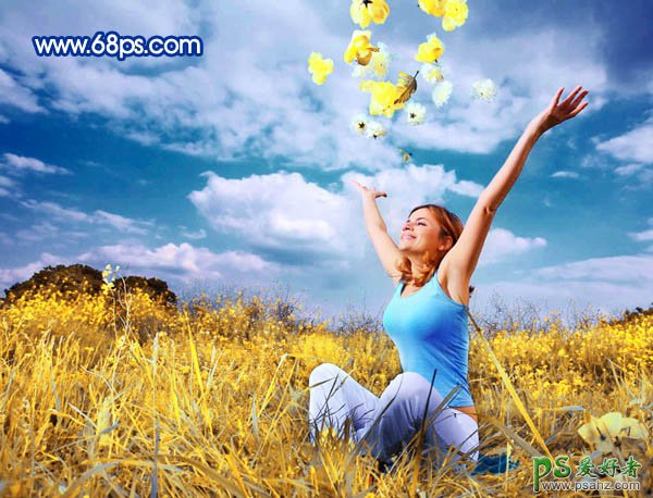 PS美女照片调色实例教程,photoshop调出景秋大胸美女田野照片,原图素材本身色彩比较少。仅绿的草地和蓝色的天空,色调已经分开。因此调色比较简单,用调色工具稍微把草地的颜色调成橙色,再适当调整下整体颜色即可。 最终效果 原图 1、打开