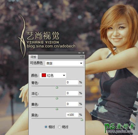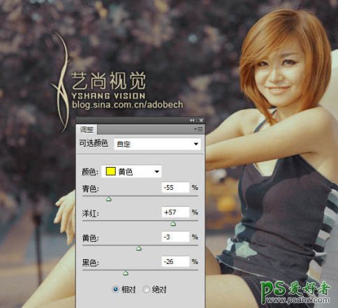 7、执行图层/新建调整图层/可选颜色,如下图: