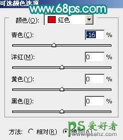 8、创建可选颜色调整图层,参数设置如图16,效果如图17。