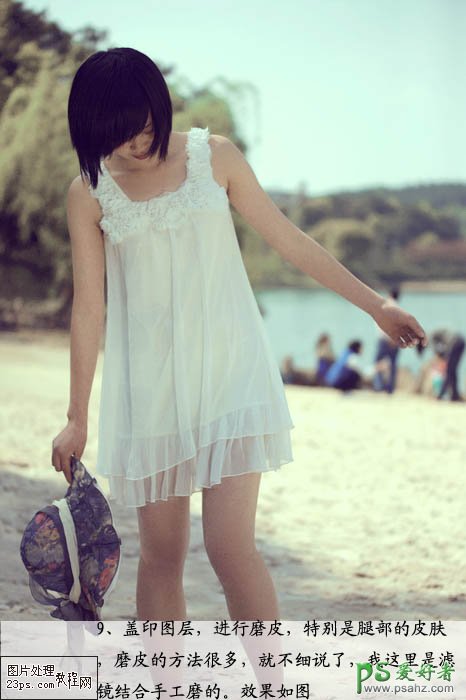 ,特别是腿部的皮肤,磨皮的方法很多,就不细说了,我这里是滤镜结合手工磨的。效果如图。