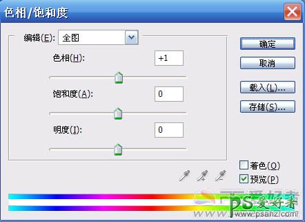 2、按ctrl+U调整色相/饱和度,参数设置如下图。