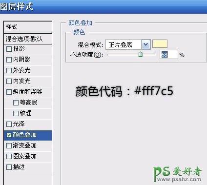 5、双击图层,设置颜色叠加图层样式,注意混合模式为“正片叠底”。