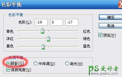 6、继续ctrl+B调整色彩平衡,参数设置如下图。