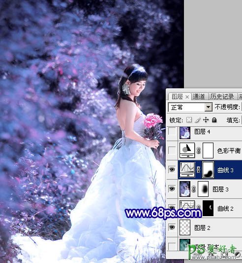 PS婚片调色实例教程,photoshop调出蓝紫色外景MM婚纱照,本教程介绍外景婚片的调色方法。原图素材拍摄的非常完美,基本上不需要美化。我们调色的目的只是尝试在不同的颜色环境中,怎样如去突出及美化人物和背景。 最终效果 原图 1、打开原