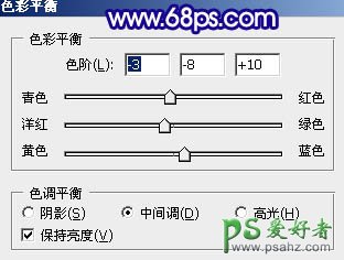 10、创建色彩平衡调整图层,参数设置如图23,效果如图24。