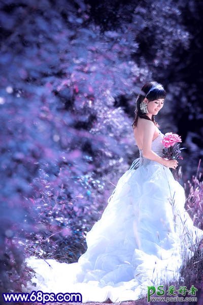 photoshop调出蓝紫色外景MM婚纱照