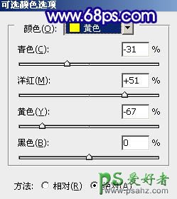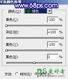 1、打开原图素材,创建可选颜色调整图层,对黄,绿调整,参数设置如图1,2,效果如图3。