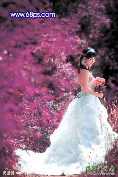 PS婚片调色实例教程,photoshop调出蓝紫色外景MM婚纱照,本教程介绍外景婚片的调色方法。原图素材拍摄的非常完美,基本上不需要美化。我们调色的目的只是尝试在不同的颜色环境中,怎样如去突出及美化人物和背景。 最终效果 原图 1、打开原