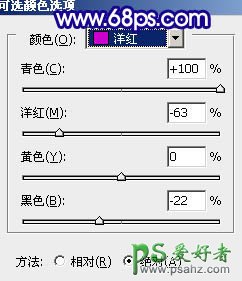 3、创建可选颜色调整图层,对红,青,洋红调整,参数设置如图6 - 8,效果如图9。
