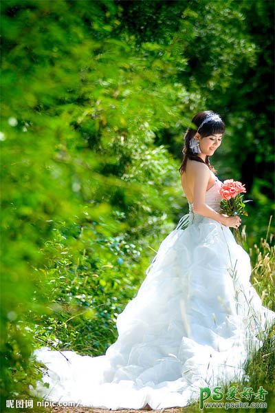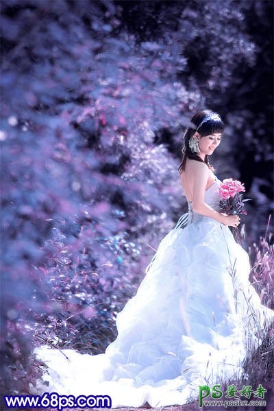 PS婚片调色实例教程,photoshop调出蓝紫色外景MM婚纱照,本教程介绍外景婚片的调色方法。原图素材拍摄的非常完美,基本上不需要美化。我们调色的目的只是尝试在不同的颜色环境中,怎样如去突出及美化人物和背景。