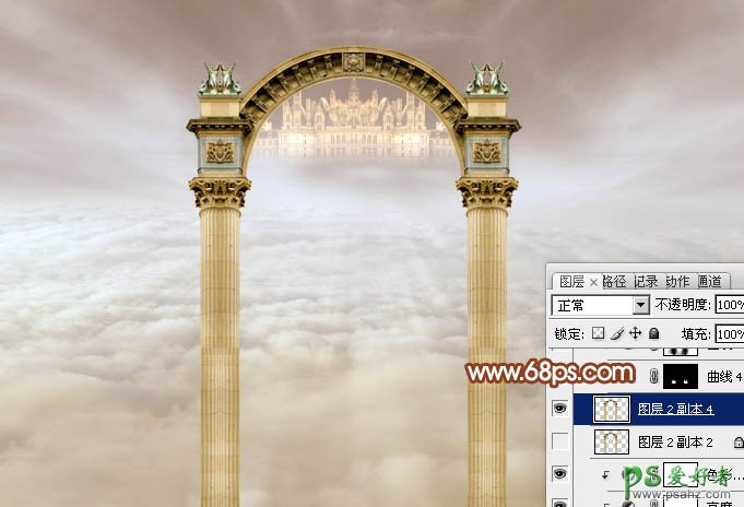 14、打开拱门素材,用钢笔勾出左半部分,右侧的直接复制,对接后再合并,效果如图25。