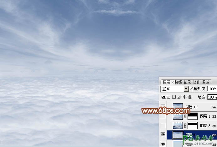 2、打开天空素材,拖进来,用矩形选区工具选取右半部分,按Delete 删除,然后把得到的天空复制一层,水平翻转一下,对接后合并这两个图层,效果如下图。