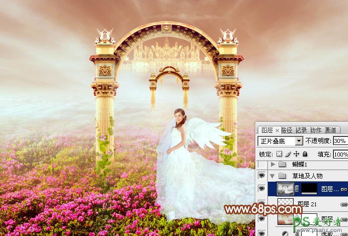 30、新建一个图层,盖印图层,按Ctrl + Shift + U 去色,混合模式改为“正片叠底”,按住Alt键添加图层蒙版,用白色画笔把底部需要变暗的部分擦出来,效果如下图。