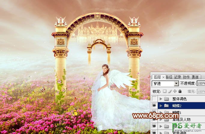 今天我们来学习一篇PS美女婚片调色教程实例,PS调出暖色调圣洁天使婚纱照,美女婚纱写真照,天使婚片的前期构思非常重要,我们可以把天使与圣殿,天使之门等联系起来。然后再整理素材,找到灵感后再慢慢构图,尽量用纯美,梦幻的效果来表现画面。最终效果