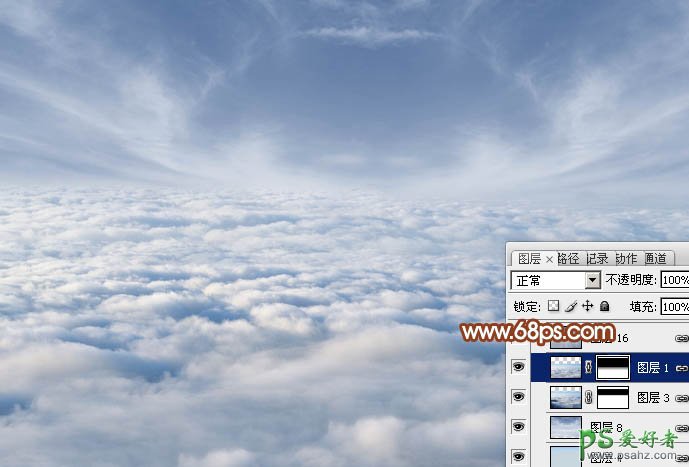 4、打开云朵素材,拖进来,放到底部位置,添加图层蒙版,用黑色画笔把顶部的过渡擦出来,效果如下图。