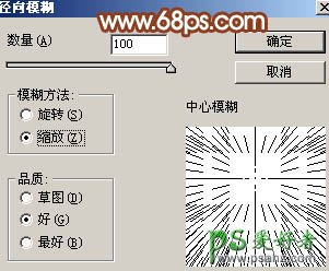 > 模糊 > 径向模糊,参数设置如图6,确定后把图层不透明度改为:60%,效果如图7。