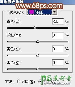 8、创建可选颜色调整图层,对洋红,白进行调整,参数设置如图13,14,效果如图15。