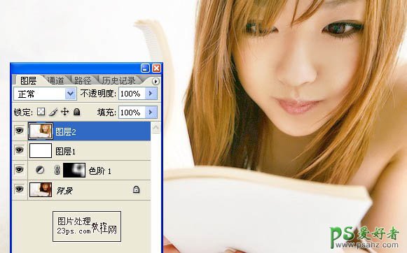 4、我们发现MM肤色偏黄,打开色相/饱和度对话框,用吸管吸取MM皮肤较黄的地方,将其饱和度降为-28。