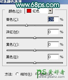 10、创建可选颜色调整图层,参数设置如图25,26,效果如图27。