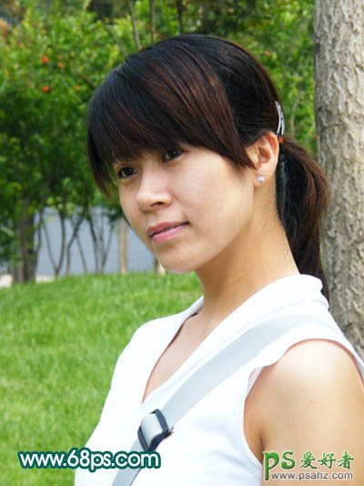 1、打开原图素材,把背景图层复制一层,选择图章工具把人物脸部的较大的痘痘涂掉,效果如下图。