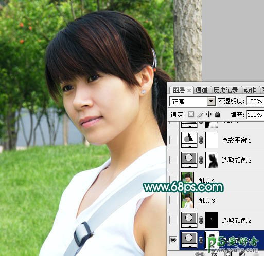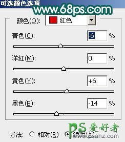 3、创建可选颜色调整图层,参数设置如图3,4,确定后用黑色画笔把人物头发及衣服部分擦出来,效果如图5。
