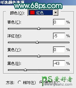 4、用套索工具把鼻子暗角部分选取出来如图6,按Ctrl + Alt + D 羽化3个像素后创建可选颜色调整图层,参数设置如图7,效果如图8。