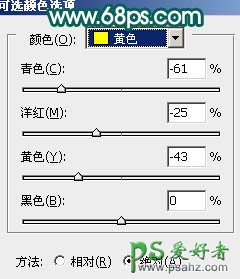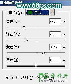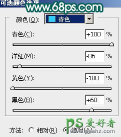 6、创建可选颜色调整图层,参数设置如图12 - 15,确定后用黑色画笔把人物部分擦出来,效果如图16。