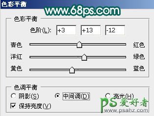 7、创建色彩平衡调整图层,参数设置如图17,效果如图18。