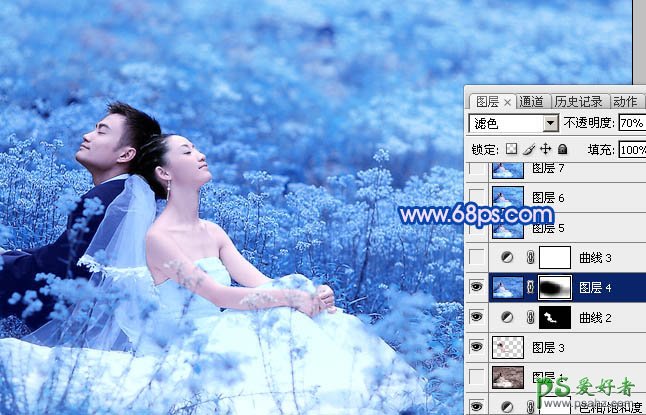 10、新建一个图层,盖印图层。执行:滤镜 > 模糊 > 高斯模糊,数值为5,确定后把图层混合模式改为“滤色”,图层不透明度改为:70%,加上图层蒙版,用黑色画笔把人物及周围部分擦出来,效果如下图。