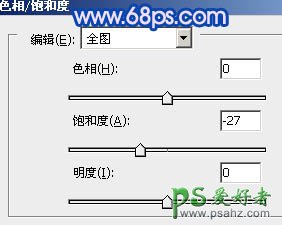 13、创建色相/饱和度调整图层,参数设置如图28,效果如图29。