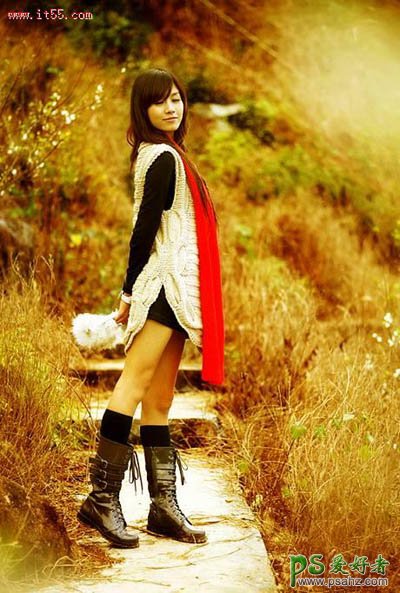 photoshop快速调出金黄色MM外景写真照