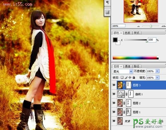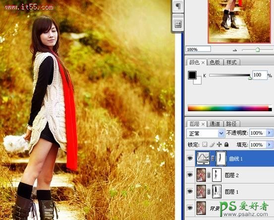 photoshop快速调出金黄色MM外景写真照