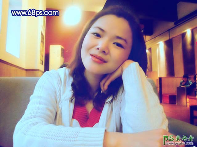 PS美女照片调色实例教程,利用PS给幸福的手机MM照片调出柔美的淡蓝色,本教程介绍室内人物照片的简单调色方法。调色之前需要简单的给人物磨片及降噪处理。然后用调色工具把人物脸部及衣服的高光部分加上一些淡淡的蓝色或其他色调,这样感觉有种灯光照射