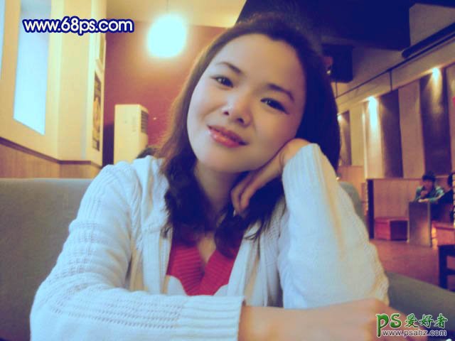 PS美女照片调色实例教程,利用PS给幸福的手机MM照片调出柔美的淡蓝色,本教程介绍室内人物照片的简单调色方法。调色之前需要简单的给人物磨片及降噪处理。然后用调色工具把人物脸部及衣服的高光部分加上一些淡淡的蓝色或其他色调,这样感觉有种灯光照射