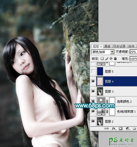 7、按Ctrl + Alt + ~ 调出高光选区,新建一个图层填充颜色:#E7BEBE,图层混合模式改为“颜色加深”,图层不透明度改为:20%,效果如下图。