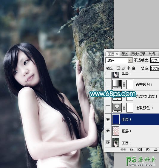 8、新建一个图层,填充颜色:#051C72,图层混合模式改为“滤色”,图层不透明度改为:20%,效果如下图。