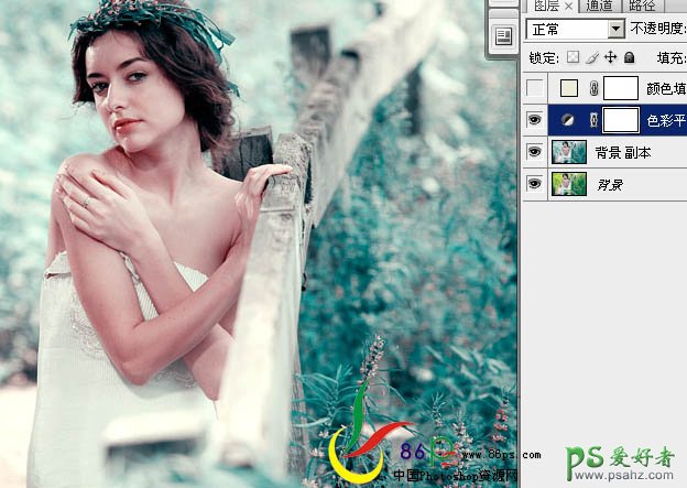 PS调出青色调外景欧美少女人体艺术照