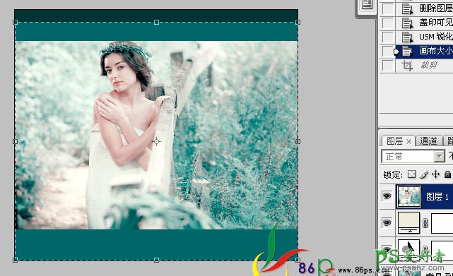 PS调出青色调外景欧美少女人体艺术照