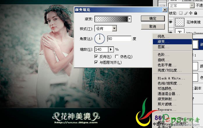 11、建一个黑色到透明的渐变,给图片加暗角。鼠标可以点在图片上移动渐变的位置。