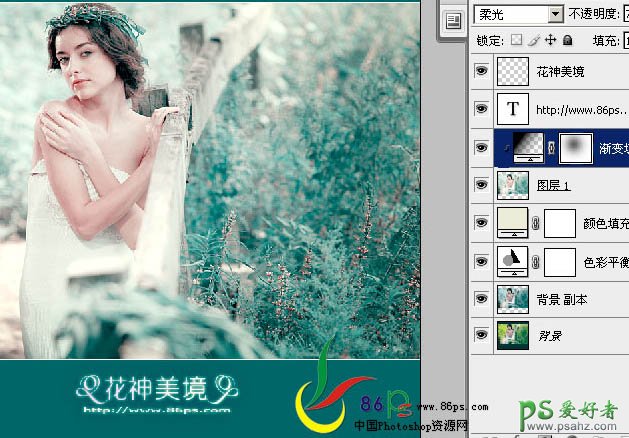 12、给渐变与图层1创建一个剪贴蒙版(快捷键Ctrl+Alt+G,或按住Alt键同时在渐变与图层1之间的缝点一下,或直接去图层—创建剪贴蒙版)。完成!