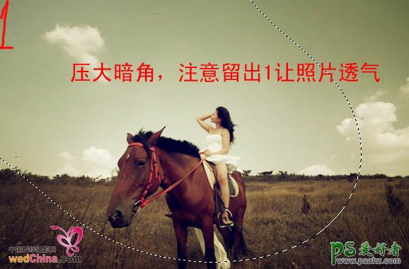6、用套索工具把边角部分选取出来,适当羽化后创建曲线调整图层,适当调暗一点,效果如下图。